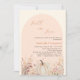 An elegant Fall in Love Bridal Shower invitation. A cream, beige coloured background and a peach coloured arch. Decorated with watercolored wildflowers in beige, pink and a pumpkin.