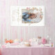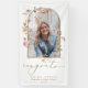 Celebrate the graduate with this pretty graduation party banner featuring the graduates photo in an arch shape in a gold frame with watercolor wildflowers and leaves in pink and green. The background is in white. "congrats" is in gold modern calligraphy font.
