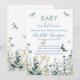 Invite friends and family to celebrate the arrival of a sweet baby with this elegant spring wildflower baby shower invitation, featuring watercolor wildflowers in hues of twilight blues and verdant green.