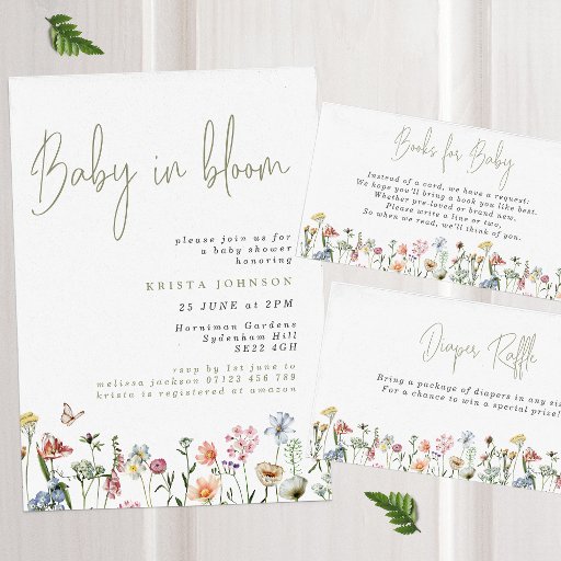 Wildflowers Baby Shower Personalised Advice Card with "Advice" in sage green modern handwritten style font, and a bottom boarder of watercolor wildflowers and butterfly. Personalise with mummy-to-be's name.