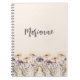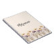A beige coloured background. Decorated with yellow and purple wildflowers. Personalise and add your name. Grey handwritten style script.