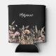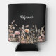 A black coloured background. Decorated with wildflowers in yellow and purple. Personalise and add your name. White handwritten style script.