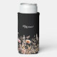 A black coloured background. Decorated with wildflowers in yellow and purple. Personalise and add your name. White handwritten style script.