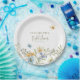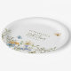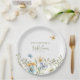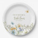 Delicate wildflowers meadow bouquet and butterflies with pastel watercolor floral blooms elegant chic spring or summer garden love in bloom bridal shower personalised paper plates with whimsical elegant modern calligraphy script over a white background.