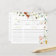 WILDFLOWERS Bridal Shower Recipe card,