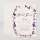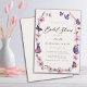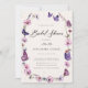 An elegant boho frame bridal shower invitation featuring wildflowers (cosmos and other common wildflowers and grasses) in watercolor, purple and pink butterflies with gold sprinkles (these are digital effects, not real foil or glitter!) and modern calligraphy, with a pink wildflower on the back, on a modern ivory background. Elegant and chic, it is the perfect invitation for a backyard garden bridal lunch, brunch or party, or for any bride who loves wildflowers, butterflies and rustic, country designs with a touch of romantic boho.