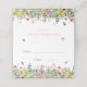 Bohemian, pretty and elegant, this bridal shower folded place card features a brightly coloured field of delicate wildflowers with butterflies, bumble bees and ladybugs.