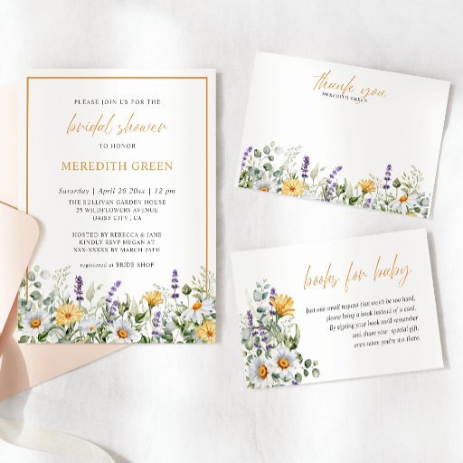 Wildflowers Daisy Lavender Boho Garden Baby Shower Invitation