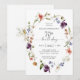 Celebrate a 70th birthday in lovely feminine style with this modern floral wildflowers birthday party invitation. A beautiful watercolor painted wreath of mixed wildflowers in hues of pink, purple, peach, blue and white with scattered greenery make this invitation pop with style. Personalise the text template with your party info. This invitation may be ordered as printed invitations or as a digital download to send to your guests electronically.