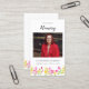 Honor a loved one with this elegant celebration-of-life memorial card featuring a photo tribute, classic typography, and a border of hand-painted wildflowers in soft, uplifting colors. The double-sided design offers space for a poem, message, or obituary, creating a meaningful keepsake for family and friends. Personalize all text and upload a cherished photo to reflect your loved one’s life and legacy.