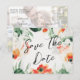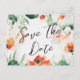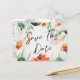 A modern and beautiful floral save-the-date photo postcard with a lovely wildflower watercolor design and a white, green, and orange colour scheme, accented by a contemporary calligraphy font for a fashionable yet romantic look. The back of the postcard is customisable with your wedding details and with one of your favourite engagement pictures.