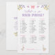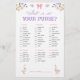 This baby shower game card is What's in your purse? The design features watercolor wildflowers, lavender, daisies and whimsical geese. Personalise the back of the cards with a name. Matching products available.