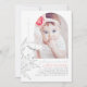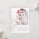 These cute pink grey and white baptism invites give the guests that warm summer feeling. The look of hand-drawn wildflowers feels very elegant, yet whimsical and natural. A clean and simple layout is designed to focus all the attention on the baby girl's photo.