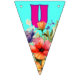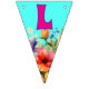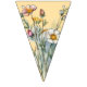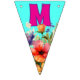 Celebrate Mum with this unique bunting banner decor. Wildflowers decorate every flag with lettering that spells out "love you mum" in bright pink letters. Other colours are aqua blue, yellow and pastels for the flowers. You may also choose the swallowtail shaped flags, but the design fits best on the triangles. Use for her birthday or Mother's Day, or to celebrate an accomplishment.