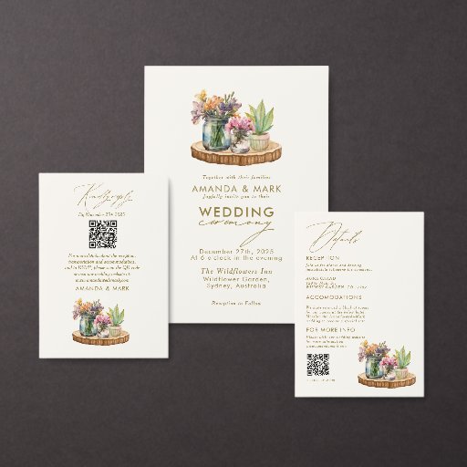 Wildflowers Mason Jar Boho bohemian wedding detail Enclosure Card