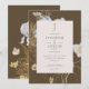 Announce your wedding with a touch of rustic elegance. Our captivating wedding invitation features a vibrant arrangement of wildflowers and ferns, meticulously hand-drawn and reminiscent of pressed botanical treasures. Rich colors like tan, yellow, cream, blue, and sage green stand out beautifully against a rich chocolate brown background frame. Your wedding details are showcased in a crisp cream text box, ensuring clarity and elegance. This captivating design captures the essence of a wildflower meadow, offering a unique and memorable way to celebrate your love story. Created by Simply Farmhouse Press.