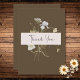 Announce your wedding with a touch of rustic elegance. Our captivating wedding thank you card features a vibrant arrangement of wildflowers and ferns, meticulously hand-drawn and reminiscent of pressed botanical treasures. Rich colours like tan, yellow, cream, blue, and sage green stand out beautifully against a rich chocolate brown background frame. Your wedding details are showcased in a crisp cream text box, ensuring clarity and elegance. This captivating design captures the essence of a wildflower meadow, offering a unique and memorable way to celebrate your love story. Created by Simply Farmhouse Press.