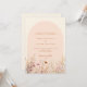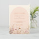 An elegant wedding invitation. A cream, beige coloured background and a peach coloured arch. Decorated with watercolored wildflowers in beige, pink.