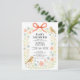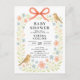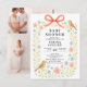 Celebrate the mum-to-be with this sweet and whimsical baby shower invitation, perfect for a spring or garden-themed celebration. The design features a delicate watercolor floral arch of soft peach and blue wildflowers, accented by two charming birds and a hand-painted coral bow at the top. The text is set in a classic serif font, offering a timeless and elegant feel. This invitation captures the gentle joy of welcoming a little one, making it an ideal choice for a warm, nature-inspired gathering. Personalise yours today to create a keepsake as special as the occasion!