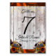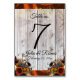 This design has a rustic elegance, keeping it simple theme. Wildflower bouquets in beautiful autumn colours and sparkling lights with copper ribbon on a barnwood background place for the table number, couple's name and wedding date. Designed to coordinate with Rustic Wildflowers & Ribbon Collection. To change details, click «Personalise». To move the text or change the text size, font, or colour click «Click to customise further»