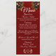 The front features wildflower bouquets in beautiful summer colours on a red background with the menu details and linked leaf monogram. The back has a placeholder for the linked leaf monogram also. Changing the fonts can create more elegant or rustic look. Available in several colours for your wedding theme. Designed to coordinate with Rustic Wildflowers & Ribbon Collection. To change details, click «Personalise». To move the text or change the text size, font, or colour click «Click to customise further»