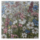 Whimsical wildflowers in pink, white, and blue against a silver iridescent stained glass effect.