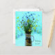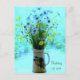 Thinking of you wildflowers postcard. Floral photography card has Daisies and Buttercups in an old glass pitcher photographed and given a blue tint. Front text says "Thinking of you" and reverse says "and saying a prayer". Both areas are in template form for easy customisation. Suitable as a get well or encouragement greeting.