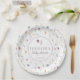 Elegant botanical watercolor colourful wildflowers, tiny flowers with violet text. Rustic baby girl shower paper plates.