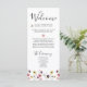 This boho wildflower wedding welcome program shines in its clean look and graceful simplicity. Modern typography and gorgeous calligraphy are accented by colourful watercolor wildflowers. This welcome program is both whimsical and elegant, just like your special day. ❤️ Customise to your heart’s content!