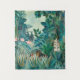 Restored vintage painting of wildlife animals in tropical jungle by Henri Rousseau in the early 20th century.