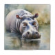 Wildlife Serenity Watercolor Hippo Tile