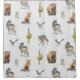 Rustic shower curtain featuring desert plant and animals: coyote, bear, wolf, road runner and cactus. Perfect for cabin or western decor