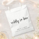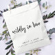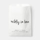 Simple, stylish "wildly in love" wedding day favour bag in a modern minimalist design style with a handwritten script typography in classic black and white written in an informal casual style. The text can easily be personalised for a unique one of a kind design for your special day. The perfect wedding favour for nature, gardening and flower lovers (wild flower seeds not included)!