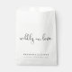 Simple, stylish "wildly in love" wedding day favour bag in a modern minimalist design style with a handwritten script typography in classic black on ecru written in an informal casual style. The text can easily be personalised for a unique one of a kind design for your special day. The perfect wedding favour for nature, gardening and flower lovers (wild flower seeds not included)!