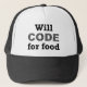 Will Code for Food hat. Who doesn't love computer geek humour? Buy this funny hat for yourself or as a gift for that special computer programmer in your life!