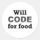 Will Code for Food stickers. Who doesn't love computer geek humour? Buy these funny stickers for yourself or as a gift for that special computer programmer in your life!
