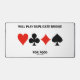 Duplicate bridge players hungry for bridge will enjoy this wry bridge humour desk mat featuring the four card suits along with the saying "Will Play Duplicate Bridge For Food". Make others do a double-take with a dose of bridge attitude at your next bridge game with this memorable bridge saying desk mat!