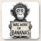 Will Work for Bananas - Humorous Monkey Sketch Coaster