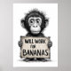 Will Work for Bananas - Humorous Monkey Sketch Poster