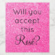 Stylish, trendy, girly "Will you accept this Rosé?" wine label with a hot pink glitter sparkle background and black writing.