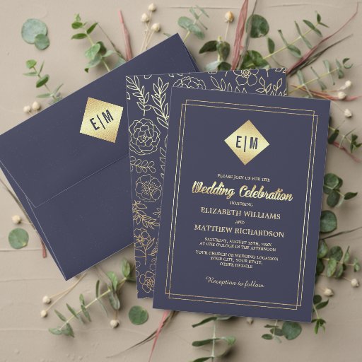 Navy Blue | Gold Simple & Elegant Wedding SuiteDesigned by Mairin Studio