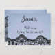 Will you be my bridesmaid blue and black faux lace invitation postcard