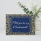 Will You Be My Bridesmaid Blue Gold Confetti Invitation