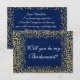 Personalised Will You Be My Bridesmaid Invitation - Vintage Glam Gold Confetti Blue Navy