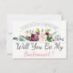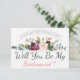 Bridesmaid proposal card with watercolor floral arrangement in burgundy, blush pink, orange and garden greenery. Personalise text, font style, colour and size.