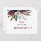 Will You Be My Bridesmaid Burgundy Floral Postcard