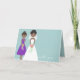 Will you be my bridesmaid? This charming & whimsical card is the perfect way to ask your friends and family to stand beside you on your wedding day. Front features a bride & her maid of honour on an aquamarine background & reads "will you..." Inside the card reads, "...be my bridesmaid?" Card can be personalised.
