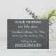 This 5" x 7" beautiful Will you be my bridesmaid? invitation card. This is best for the bride. If you looking at asking someone to be yourbridesmaid for your future wedding, then why not choose this bridesmaid cards. This customised invitation card will make your friend, sister cousin, nephew, daughter or whoever else you choose feel that extra special. This invitation is easily personalised by clicking on the customise it button under the image where you will be able to change the text, font and size. You can invite your best buddies in style with these classy invitations. It is suitable for the flower girl,maid of honour or for matron of honour. Send them this bridesmaid card.
