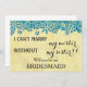 This 5" x 7" beautiful Will you be my bridesmaid? invitation card. This is best for the bride. If you looking at asking someone to be yourbridesmaid for your future wedding, then why not choose this bridesmaid cards. This customised invitation card will make your friend, sister cousin, nephew, daughter or whoever else you choose feel that extra special. This invitation is easily personalised by clicking on the customise it button under the image where you will be able to change the text, font and size. You can invite your best buddies in style with these classy invitations. It is suitable for the flower girl,maid of honour or for matron of honour. Send them this bridesmaid card.