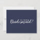 "Will You Be My Bridesmaid?" Modern Script Navy Blue Card